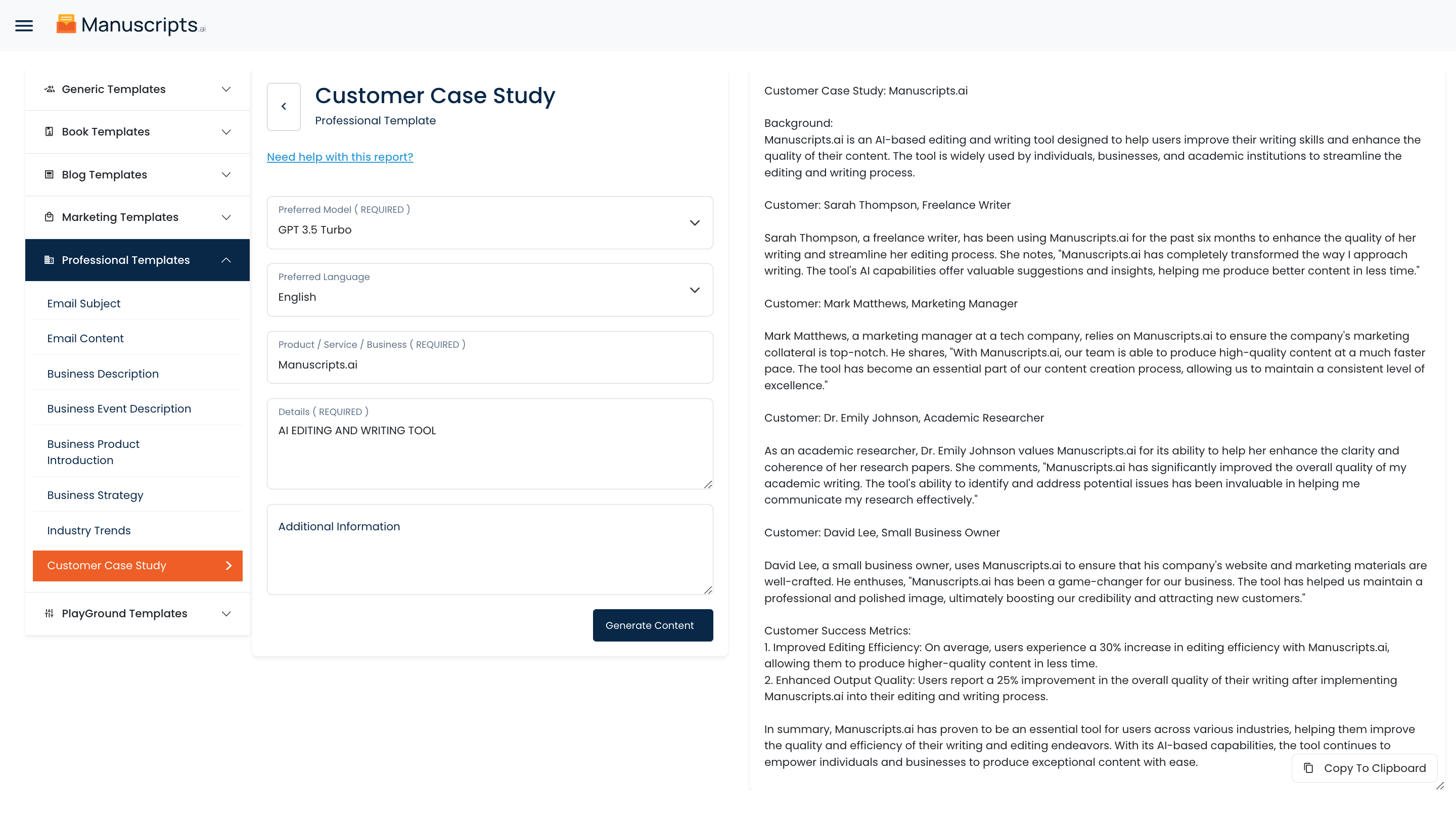 Copy your output content for further use by clicking the Copy to Clipboard button.