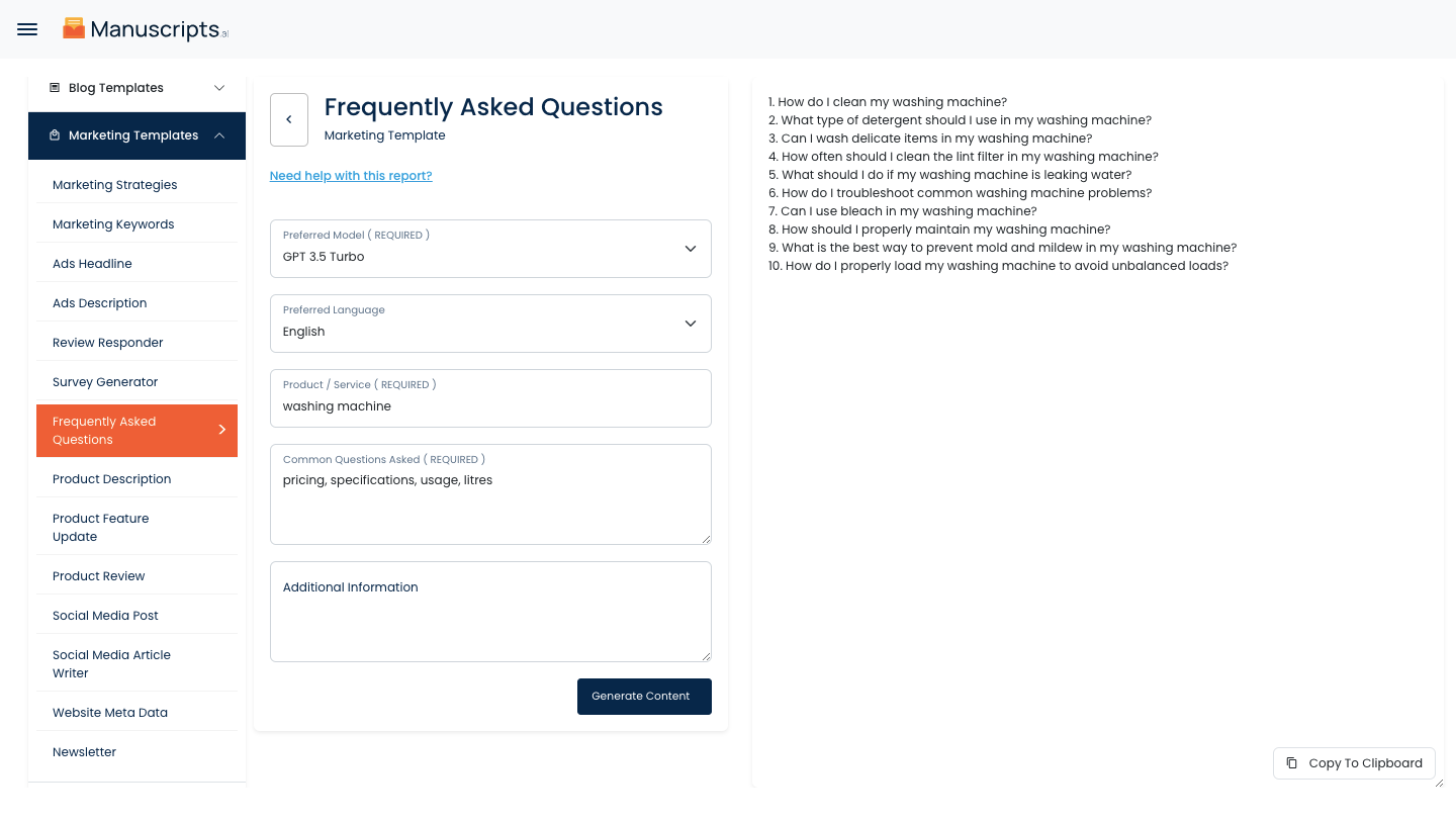 Copy your output content for further use by clicking the Copy to Clipboard button.