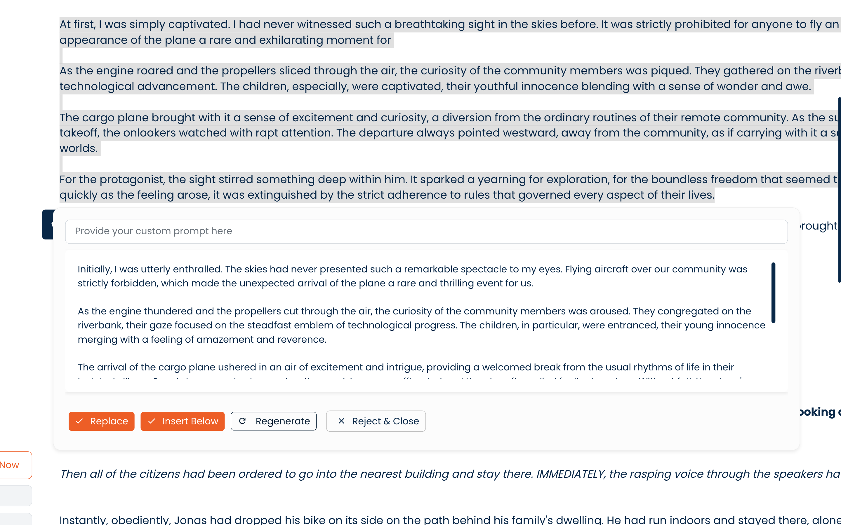 Proceed by clicking on “Replace” or “Insert Below” to get your desired content.