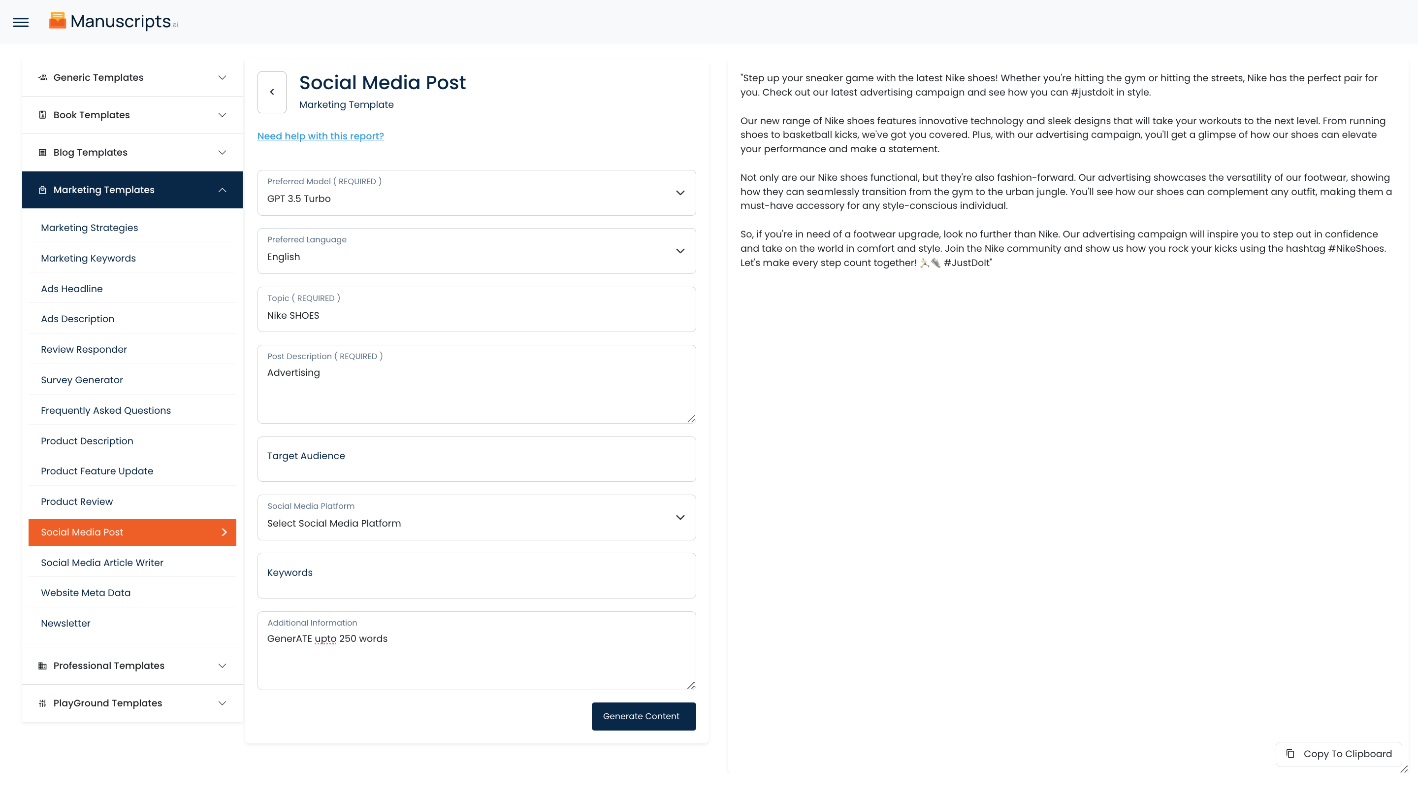 Introducing our latest AI-powered tool- the “Social Media Post” feature! In today’s digital world, social media has become an essential platform for individuals and businesses to connect, engage, and grow their online presence. With our new AI feature, creating engaging and impactful social media posts has never been easier.