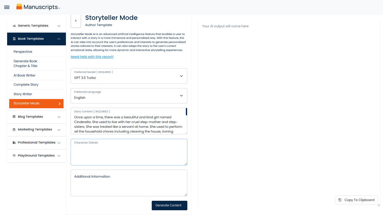 Generate your content by clicking on the Generate Content button.